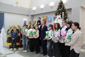 В преддверии нового года дети посмотрели волшебную сказку «Летучий корабль». Атмосфера праздника царила не только на сцене, но и после представления в фойе. Ребята получили новогодние подарки из рук персонажей сказки. А затем получили возможность сделать фото в красиво украшенных фотозонах.